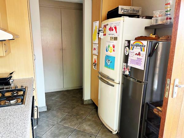 Both bedrooms are bright, spacious, and fitted with generous built-in cupboards. The family bathroom includes a shower, toilet, and basin, while the main en-suite bathroom offers a bath, toilet, and basin. The home is fully tiled throughout, neat, and exceptionally well maintained.