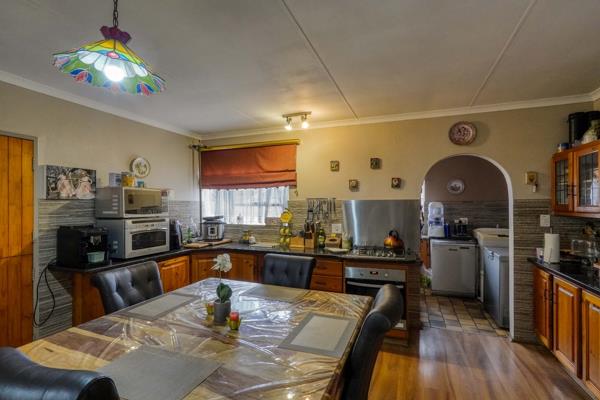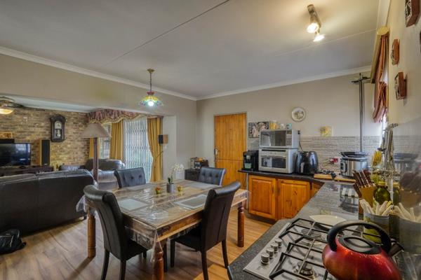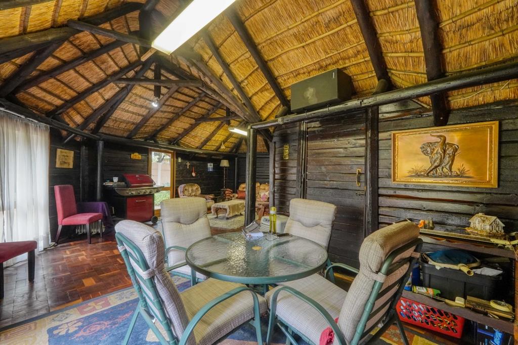 From the living areas, a doorway opens to a covered lapa that leads into the garden. Here, a heated swimming pool and boma create an inviting outdoor setting, perfect for relaxed gatherings and year round enjoyment. The seamless flow between indoor and outdoor areas makes this home equally suited to quiet family living and social occasions.