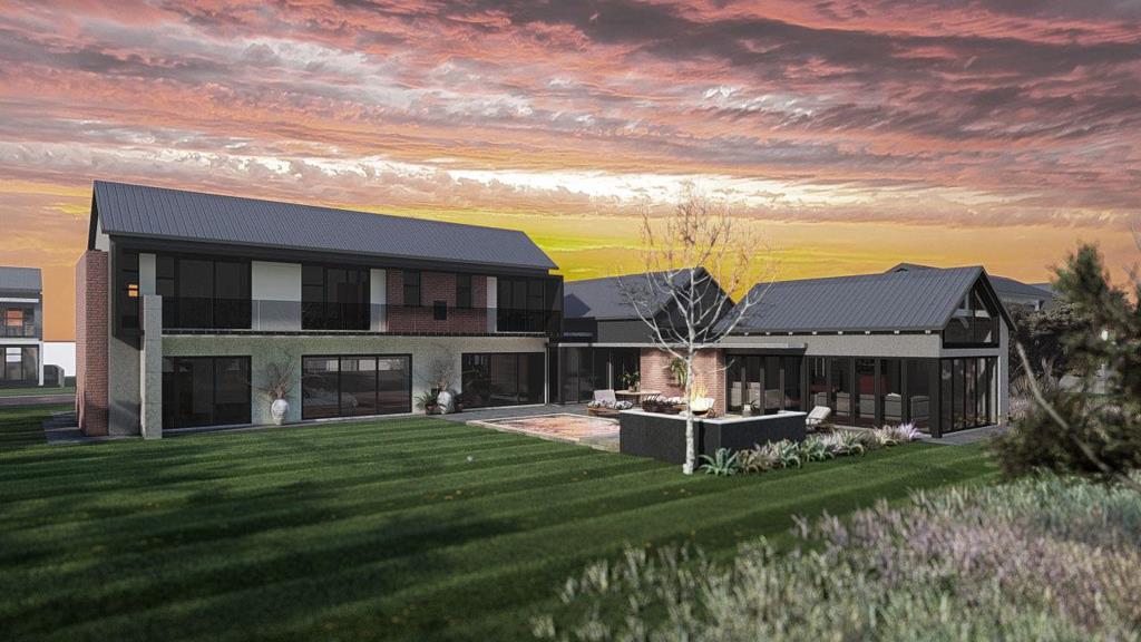 Arrive via a charming Cottage Stone driveway, where the double garage is positioned to the left with generous visitor parking in front, while a separate single garage is located to the right of the property. Concrete steppingstones lead you to the front door, setting the tone for this luxury estate home designed for refined modern family living.