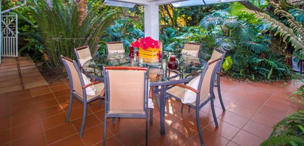 The main residence comsists of four well-sized bedrooms and two bathrooms, along with three exceptionally large living areas, one of which features a built-in fireplace. All living areas flow seamlessly onto covered patios, overlooking a beautifully landscaped garden and a recently renovated swimming pool. and a covered braai area. Adding to the appeal is a charming thatched lapa, complete with two bedrooms, a lounge, dining area, kitchen, and bathroomideal for extended family, or over night guests. There are steps in the lapa so not recommended for persons with walking disabilities