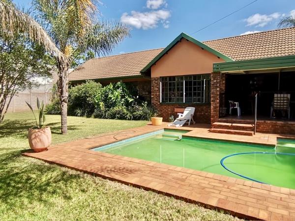 Entertain year round on the covered patio with built in braai overlooking the sparkling pool and lush garden