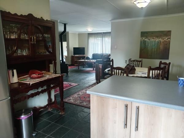 This property features three spacious tiled living areas, complete with a cozy fireplace. Additionally, there''s an enclosed entertainment area that opens up to a garden equipped with an irrigation system. The well-appointed open-plan kitchen includes a breakfast bar for casual dining. You''ll find three bright and airy bedrooms, each with built-in cupboards, along with two beautifully designed bathrooms. The property also boasts a double garage and a carport. Conveniently located within walking distance of both Afrikaans and English high schools.