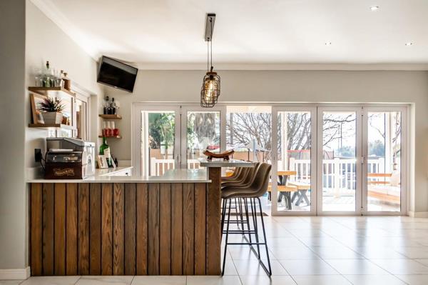 Open-plan kitchen, living room, bar, dining area, and indoor braai