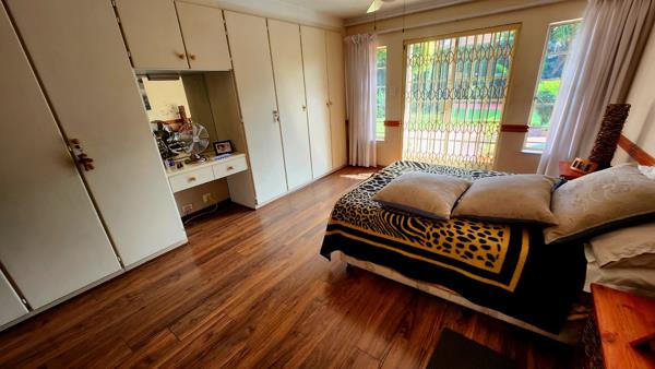 Offering two title deeds in one. This unique home includes both the main residence and a caravan garage featuring a loft. With charm and elegance, this residence presents 4 spacious bedrooms equipped with ample cupboards, a study with built-in shelves, and 2 full bathrooms. The expansive lounge and TV room overlook a sparkling heated pool and beautifully landscaped garden, perfect for relaxation and entertainment.