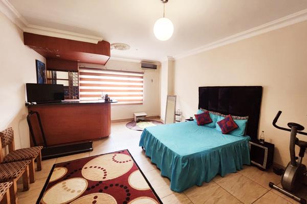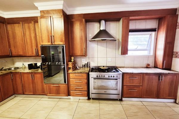 The beautifully landscaped garden and sparkling swimming pool create a private retreat ideal for relaxation and entertainment. A covered veranda offers the perfect setting for family braais or alfresco dining, while the south-facing balcony invites tranquil views and warm natural light.