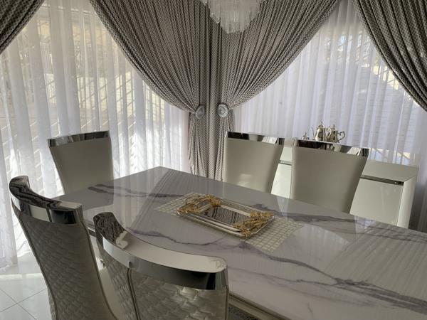 Beautiful family home in Erasmia for sale. This immaculate home has 4 bedrooms, two bathrooms (one en-suite) , as well as a large dining room , lounge, separate study and large modern kitchen. The home has four lock-up garages, as well as undercover parking for six vehicles. CCTV cameras are an added benefit for your security. There are ample staff quarters on the property as well as a well-established home-based business earning approximately R50 000.00 nett per month. Kindly enquire for more information. Dont lose out on this wonderful property.