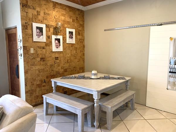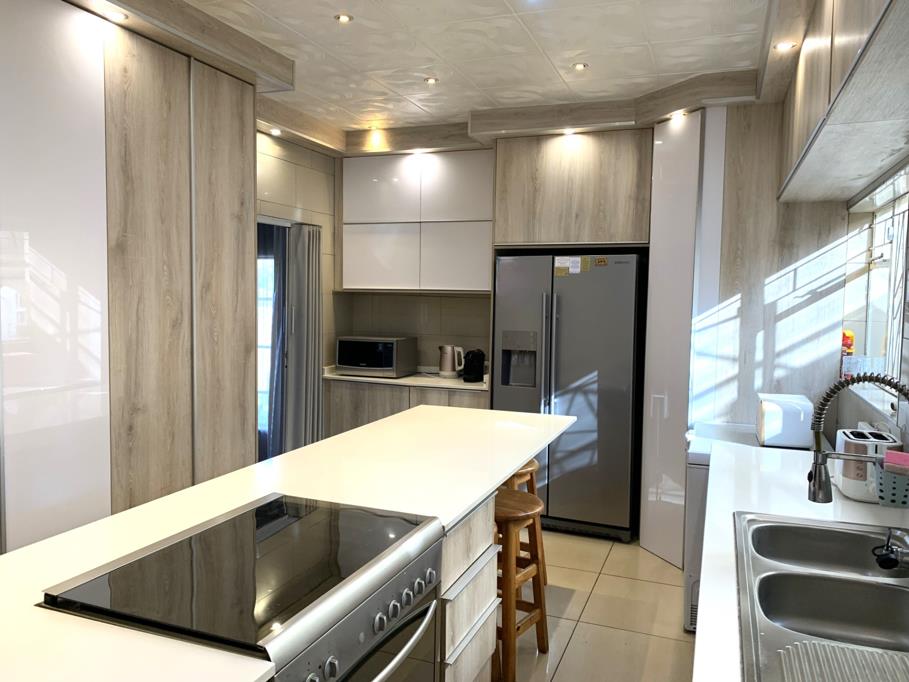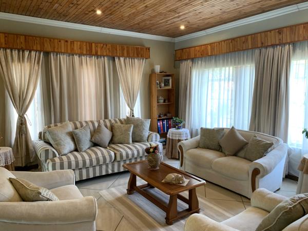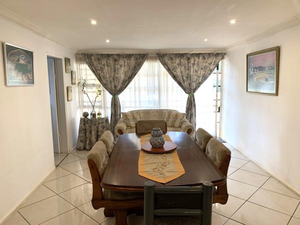 Excellent opportunity for a comfortable and leisurely family life! Grab this beautiful home now. Enter through a lush garden into the entrance hall and step into this spacious home. The Kitchen is ultra-modern and has two stoves, one electric and one gas stove, ideal for cooking and baking. The home has a very spacious dining room where the family can gather around the dining room table to enjoy some valued family time together. The lounge is large, tranquil and serene and is very suited to relaxed visits with guests or family. The spacious TV room is adjacent to the covered Lapa, which has a jacuzzi as well as a built-in braai. The door leads onto the swimming pool and established garden at the back. The home has four bedrooms with three spacious bathrooms. The main bedrooms bathroom is en-suite and has a walk-through cupboard with ample packing and hanging space.
