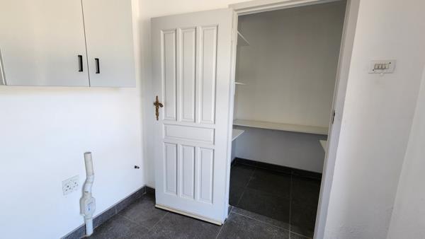 The newly renovated home offers a modern kitchen with a dedicated laundry area and pantry storage .
