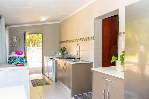 Outdoor Kitchen & Braai Area:A fully equipped kitchen, toilet, braai area, and pizza oven make outdoor entertaining a breeze.