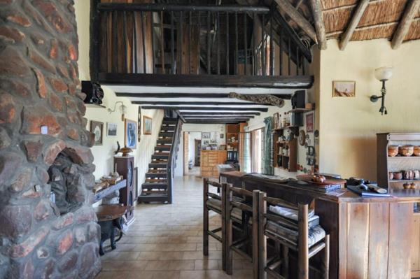 The inviting lounge, framed by exposed thatch beams and rustic brick walls, captures the essence of countryside living, while the beautifully appointed kitchen brings practicality and charm together effortlessly. Outdoors, the entertainment area and pool create the perfect backdrop for hosting unforgettable gatherings beneath wide-open skies.
