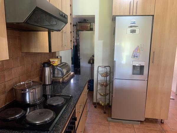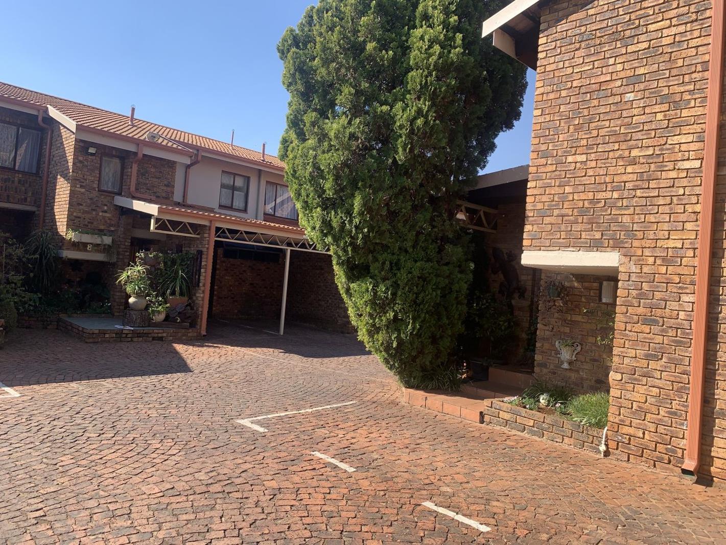 This very spacious duplex is situated in the beautiful suburb of Hennopspark. The unit is entered through an entrance hall, with a guest toilet situated on the left. To the right there is a modern and spacious kitchen , with a separate scullery allowing 4-5 appliances. On the left of the kitchen a large lounge and adjacent dining room area allows for lovely family time and relaxation. This lounge/dining area leads onto a spacious stoep/patio which overlooks a spacious back garden. The upstairs area consists of 3 very spacious bedrooms with a bathroom consisting of a bath , toilet and basin as well as a showerhead over the bath. The bedrooms are all fitted with built-in cupboards, and the main bedroom has a door leading to a balcony where one can enjoy a beautiful view. The unit has a special levy apart from the main levy.