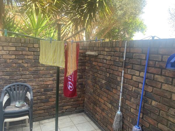 This lovely complex is a haven of tranquillity and beauty, with a communal swimming pool and beautiful lush gardens. The complex is situated close to all schools in Hennopspark and suited to family living. When entering the unit, a guest toilet is situated to the right, on the left is the kitchen , equipped with space for four appliances including a single fridge. The dining room and separate lounge is spacious and leads out onto a patio covered with IBR roof. The back garden is spacious and well maintained. Upstairs there are a spacious main bedroom with ample cupboard space, as well as a second and third bedroom . The bathroom upstairs consists of a bath, basin and toilet, with a separate shower for convenience. The unit is sturdy and spacious and has a washing line and courtyard at the back of the kitchen, as well as one carport with extra open parking space available in the complex. Call now to avoid appointment!