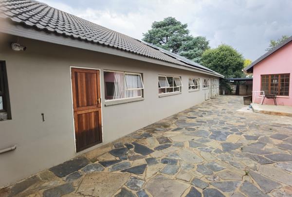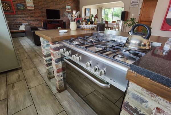 This property lends itself for running a business from home. Its location is ideal for exposure and visibility. A very large paved erf, more than enough space for parking. OFF the grid with electricity. The house has 4 bedrooms, 2 Living areas, one leads out onto the patio, the other blends in with the very large open plan Kitchen. The kitchen has an island with a Gas hob, plenty of cupboards and space for a double door fridge and more.