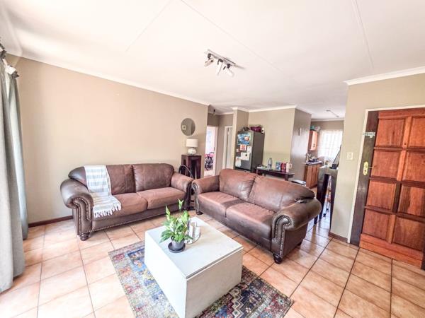 Discover this inviting 2-bedroom, 1-bathroom apartment in a well-maintained Hennopspark complex. The durable face brick exterior and tiled roofs ensure low maintenance, with a paved courtyard and individual 1 garage for secure parking. Inside, the 77 sqm unit features a comfortable lounge with tiled flooring and abundant natural light, flowing into an open-plan kitchen with wooden cabinetry. Both bedrooms are fitted with tiled floors, natural light, and built-in wardrobes. The full bathroom includes both a bathtub and a separate shower. Enjoy outdoor living from your private balcony. The complex provides a communal pool, garden, and secure access with electric fencing, an access gate, security gate, and burglar bars. Hennopspark offers a convenient suburban lifestyle in Centurion.