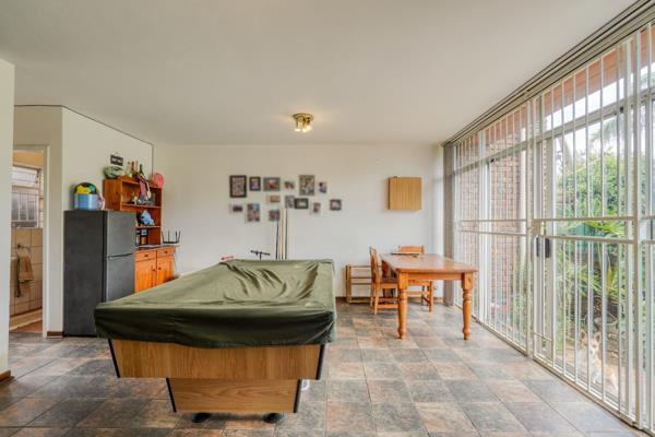 The lounge is directly connected to the dining area, forming a comfortable open living zone ideal for relaxing or entertaining. A guest toilet is conveniently located near the front entrance, adding to the homes practicality. Set within a secure complex, this townhouse offers a great combination of space, layout, and peace of mind in a popular Hennopspark location.