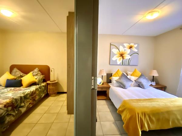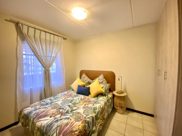 Looking for a 2-bedroom apartment in Heuweloord that has 2 carports and 2 bathrooms, with a kitchen that flows to the dining room, in a complex estate with 24-hour security, fully walled and fenced with electric gates, easy access to roads and schools, and next to pre-schools and garages.