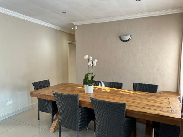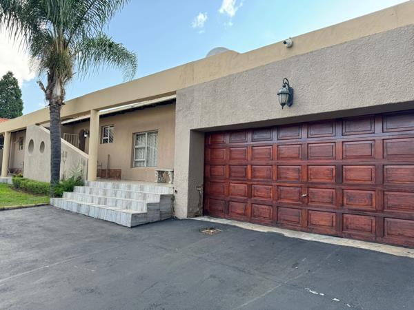 Step into a large entertainment area inclusive of a swimming pool and lapa. There is an additional room on the outside with its own bathroom used as domestic quarters. The double garage is also well spaced for built in cupboards. The garden is well maintained and beautiful.