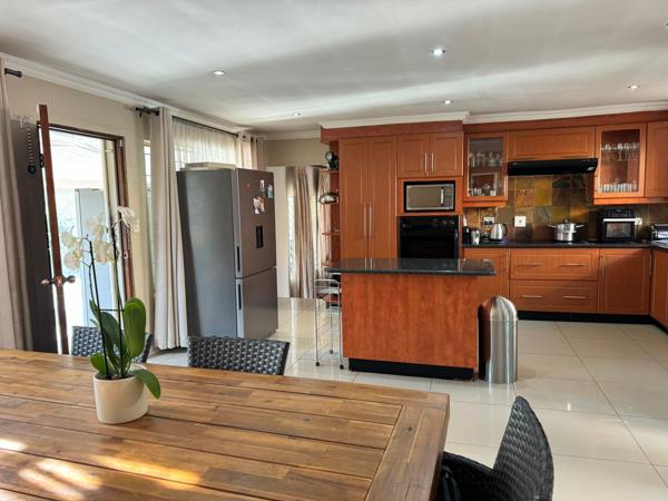 Step into a large entertainment area inclusive of a swimming pool and lapa. There is an additional room on the outside with its own bathroom used as domestic quarters. The double garage is also well spaced for built in cupboards. The garden is well maintained and beautiful. areas. This beautiful home features four large bedrooms. The main bedroom has lots of space including a beautiful en-suite.
