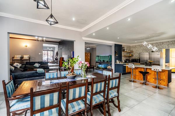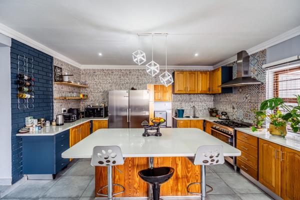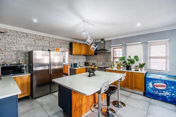 The TV lounge flows seamlessly into the dining area and modern kitchen, designed with both style and functionality in mind. The kitchen includes a central breakfast island, gas stove, ample cupboard space, and extensive working surfaces. A separate scullery provides extra storage, an additional stove, and space for all appliances. The enclosed patio, accessible from the dining area, features a built-in braai, creating the perfect entertainment space for year-round gatherings. Additional Features include: Alarm system with 3 exterior beams, Double automated garage, Access gate for added security, Spacious garden and generous stand size, Pre-paid electricity and Fibre ready.