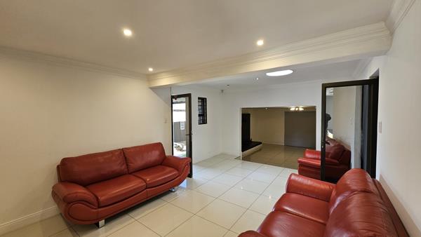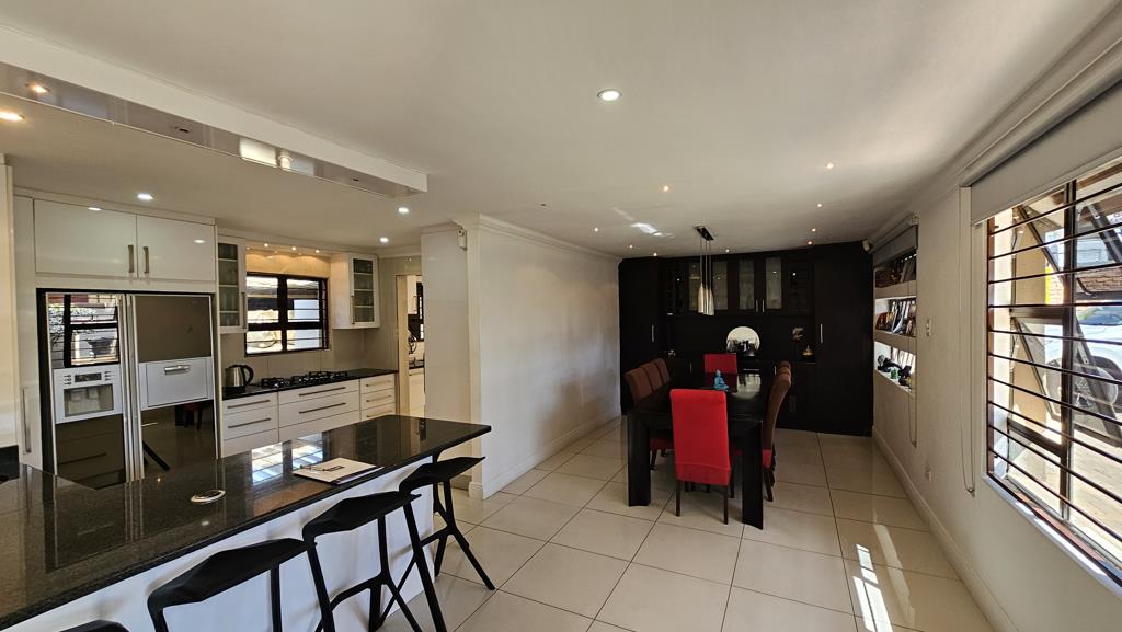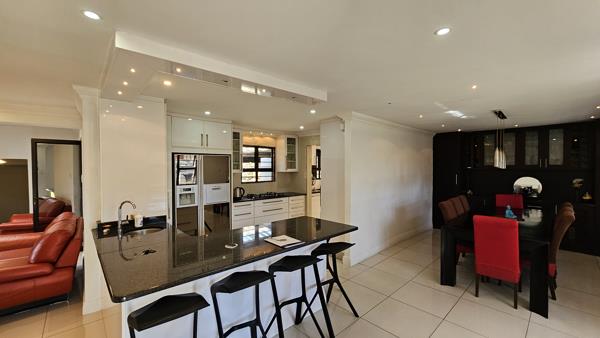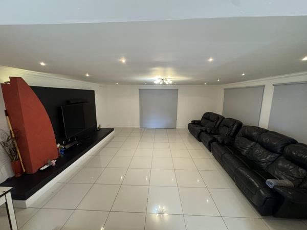 This modern home blends style, practicality, and is designed for both relaxation and productivity. Its suited to families, entertainers, and business owners working from home. Inside, the open-plan layout flows seamlessly from the designer kitchen into spacious dining, living, and TV areas. The kitchen boasts sleek cupboards, a gas hob, and a separate utility room with double scullery for effortless entertaining. Expansive windows and uniform tiling create a bright, cohesive, and sophisticated interior, while sliding doors open onto an enclosed patio for year-round indoor-outdoor living.