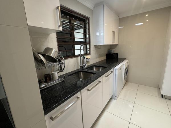 Three bedrooms feature laminated flooring and built-in cupboards, with the main suite enjoying a walk-in closet and modern en-suite. Bathrooms are elegantly finished with quality fittings and thoughtful layouts.