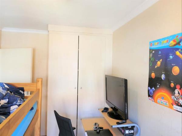 This unit is situated in a secure complex with security and a 24-hour access control. The apartment itself has strong burglar bars on all opening and non-opening windows including all external doors.