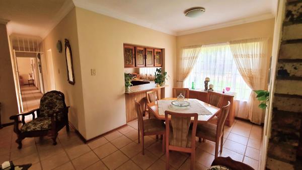 Step outside and discover a haven for relaxation. A laundry room, staff toilet, and double garage with a double carport offer ample storage and parking. Host unforgettable braai gatherings under the covered veranda, surrounded by the beauty of your landscaped garden.