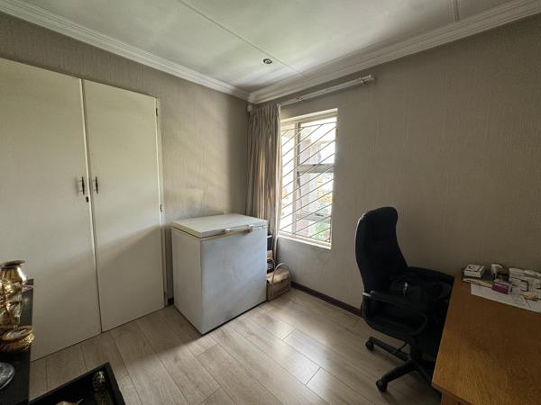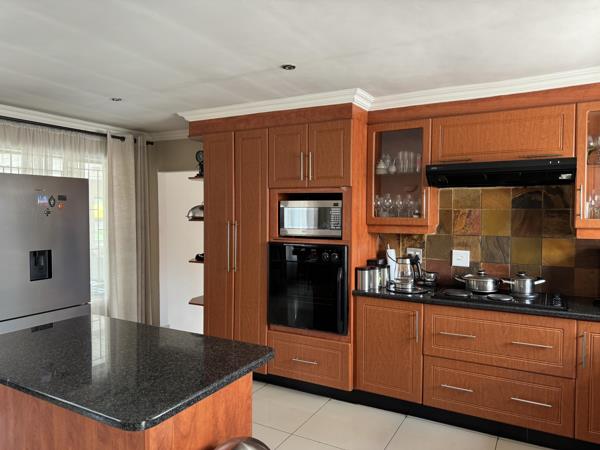 Perfect for entertainers, the property boasts two entertainment areas, one leading out to a sparkling pool and lush garden, and another with a built-in braai and bar. The home also includes a large patio, double garage with storage, domestic quarters, a well-kept garden with veggie beds and fruit trees, plus practical extras like a generator, prepaid electricity, aircon, and an alarm system.