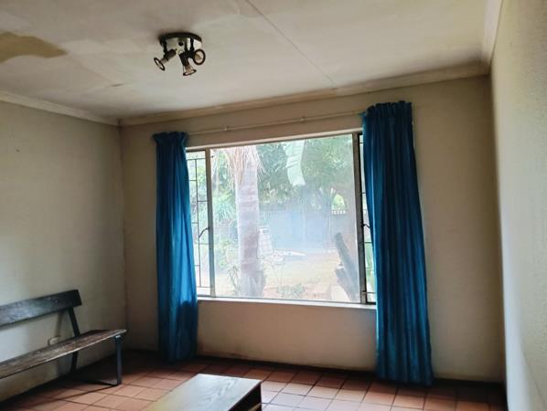 It features a spacious kitchen recently refurbished with tiled walls. It offers separate dinning and living rooms. The main spacious bedroom has build in capboards. There is one toilet and bath with a basin. The other two bedrooms are spacious enough for a single bed to fit.