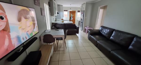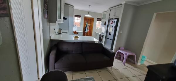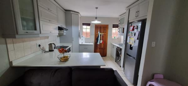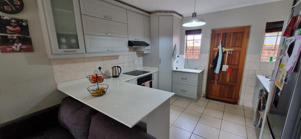 This delightful residence showcases a modern open-plan kitchen featuring ample cupboard space, a glass top stove with an extractor fan, a handy pantry, and room for a double-door fridge, along with a designated area for appliances. The fully tiled interior creates a warm and inviting atmosphere, perfect for making cherished memories.