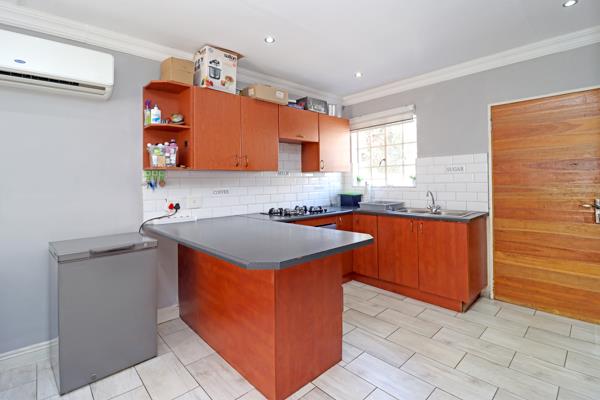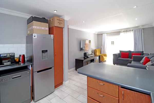 A 3-bedroom townhouse in Heuwelsig Estates, mandated by Seeff. This property features two bathrooms, a shower, and a kitchen that seamlessly flows into the dining room.