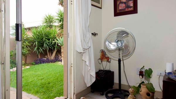 Both tiled bedrooms feature fitted wall fans for year-round comfort. Step outside to a generously sized garden offering complete privacy, perfect for relaxing or entertaining. The outdoor area also includes a built-in braai, plus an outside sink and worktop for food preparation, making it ideal for outdoor gatherings.