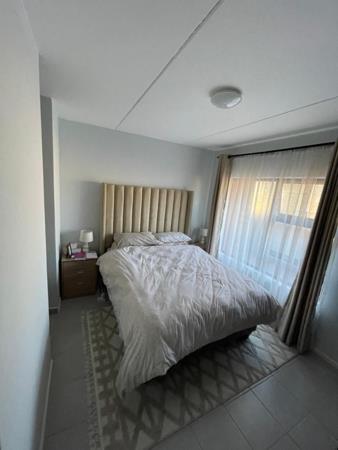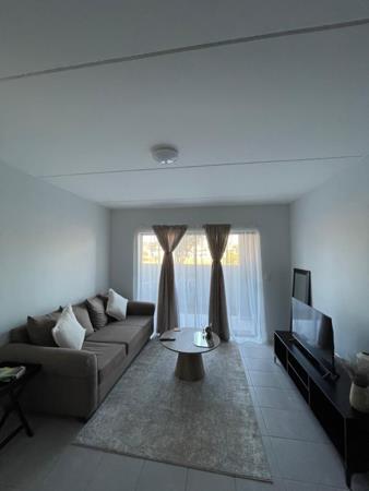 Discover modern living in this inviting 2-bedroom, 2-bathroom apartment located in a secure complex in Kosmosdal, Centurion. Spanning 58 square metres, this residence offers a contemporary design with a focus on comfort and functionality. The open-plan living area is bathed in natural light from large sliding doors, creating a bright and airy atmosphere, complemented by clean tiled flooring.
