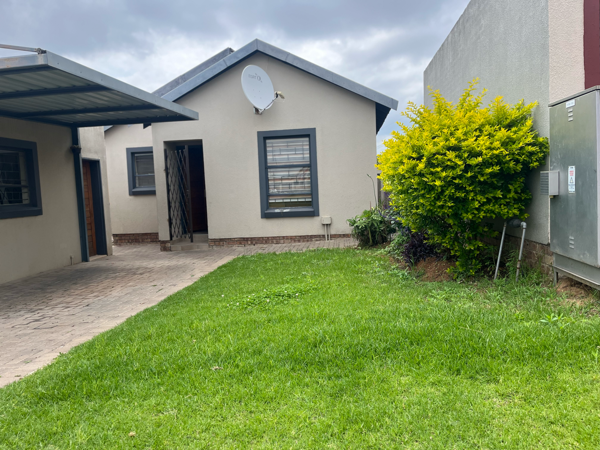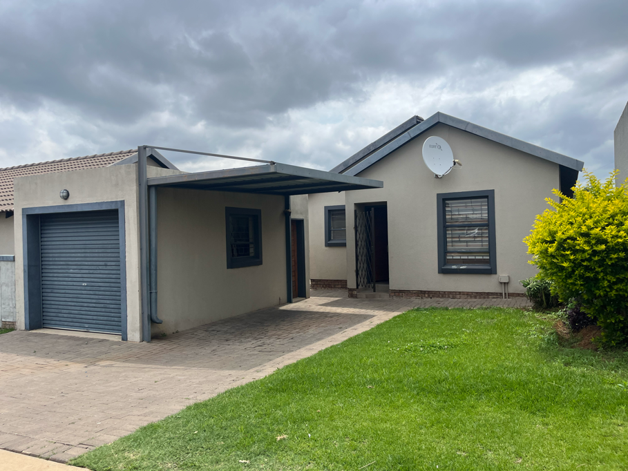 A single garage and an additional covered carport, offering generous parking solutions. The small, easily maintainable front garden adds a touch of greenery, perfect for those seeking a low-maintenance outdoor space. Located within a desirable gated community and security estate, residents benefit from a secure suburban lifestyle. Pets are allowed, and the estate also features a clubhouse for community enjoyment.