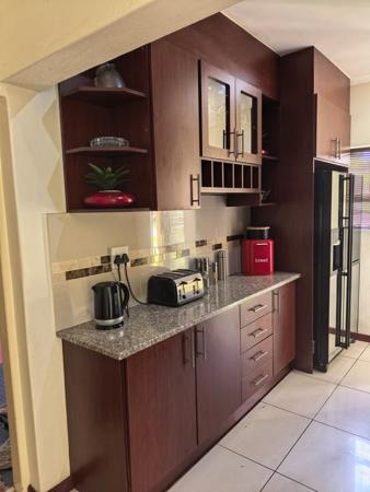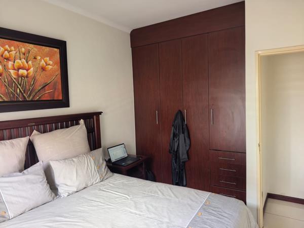 External features include a double garage and a private garden. The patio, equipped with a built-in braai, provides an ideal space for outdoor entertaining.