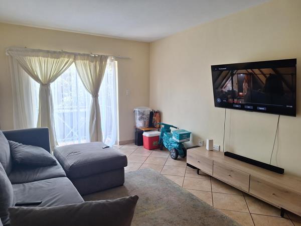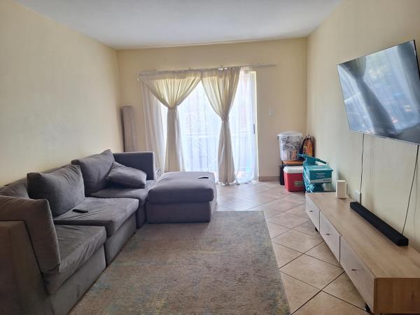 As you enter the apartment, you are welcomed by a neat open-plan kitchen featuring a breakfast nook, ample built-in cupboard space, space for appliances, a stove, and tiled floors. The kitchen flows seamlessly into a large, airy lounge, creating a comfortable living space that opens onto a private balcony with scenic viewsperfect for relaxing or entertaining.