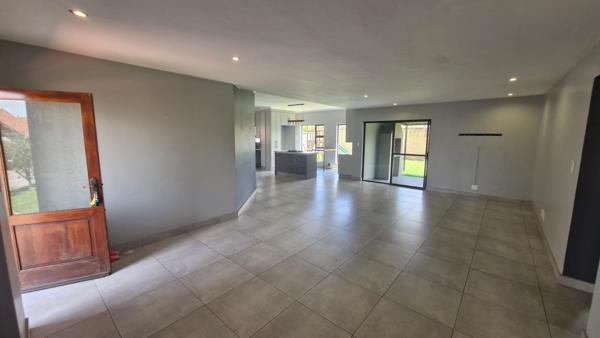 Discover this modern 3-bedroom, 2-bathroom home situated within a secure estate in Kosmosdal, Centurion. The property boasts an attractive, well-maintained exterior with a warm grey finish, tiled roof, and charming dormer windows, complemented by a double garage with wooden doors and a distinct cobblestone driveway. Manicured landscaping enhances its inviting kerb appeal.