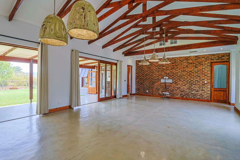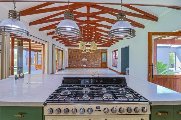 A separate en-suite studio cottage provides valuable extra accommodation for visiting grandparents, older children, or guests, offering independence and privacy with its own garden and outlook, while remaining close to the main home. The family kitchen is the heart of the home and well equipped for daily living and entertaining. It includes a Smeg Victoria gas hob with electric oven, generous pantry space, a separate laundryscullery, and a linen room keeping family life organised and clutter-free. Comfort and sustainability go hand in hand, with a 5kVA Victron inverter, 12 solar panels, and a 10kWh backup battery, ensuring uninterrupted power for busy households. Three gas geysers, 30,000 litres of rainwater storage, and rain-fed irrigation support efficient, eco-conscious living. BreezeAir cooling keeps the home comfortable in summer, while a Becker anthracite fireplace creates a cosy gathering point during winter evenings.