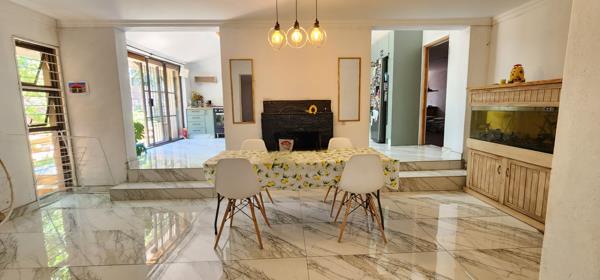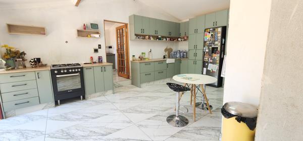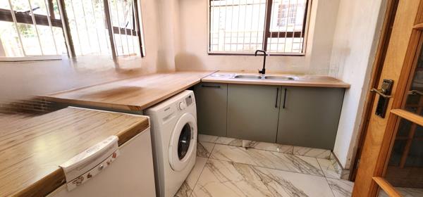 The living areas are bright and expansive, perfect for both relaxation and entertaining. The modern metallic-colored kitchen is a standout feature, boasting sleek finishes, ample cabinetry, a separate scullery, and a walk-in pantry just right for every woman''s need & for all culinary storage needs.
