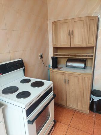 the flat has a comfortable and spacious lounge and dining room. The kitchen has space for electric stove a fridge with units.