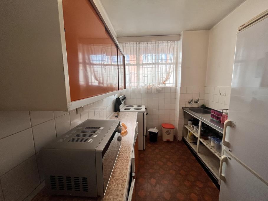The flat has a small but workable size kitchen and a comfortable open lounge and dining area.
