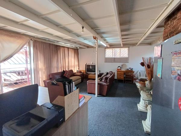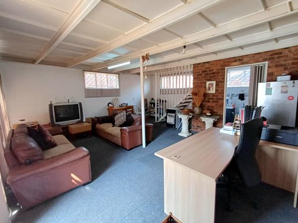 Double garage converted into a loft with an open-plan lounge, dining, and kitchen area, plus its own entrance and bathroom, Back door which leads to pool area as well. The 1 bedroom is Upstairs with extra storage space.