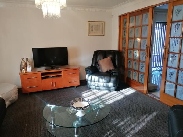 The main house which consists of 3 spacious bedrooms, 1 en -suite, common bathroom, lounge, dining, kitchen, scullery, a double lock up garage, patio and backyard with a garden area.