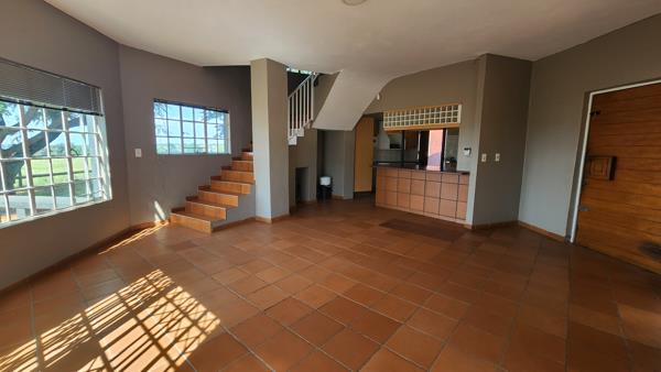 The second dwelling is a 2 bedroom thatch roof property that has a lounge and kitchen , along with a dinning area . The upper floor is spacious and has a walk in cupboard. This dwelling comes with a double garage for parking