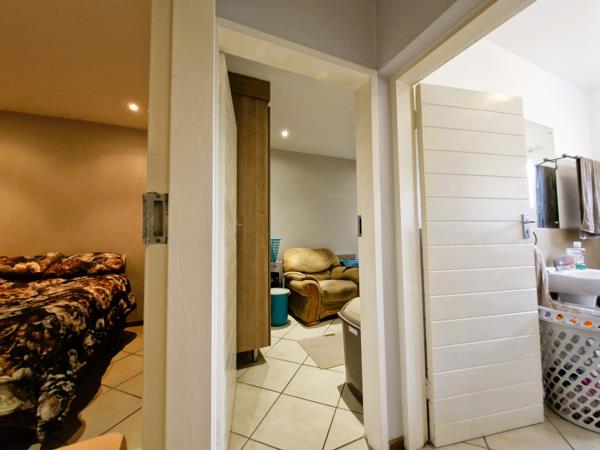 The kitchen provides space for two appliances and a single-door fridge, making everyday living convenient. A solar geyser helps reduce electricity usage, and the unit is fibre ready for seamless connectivity.