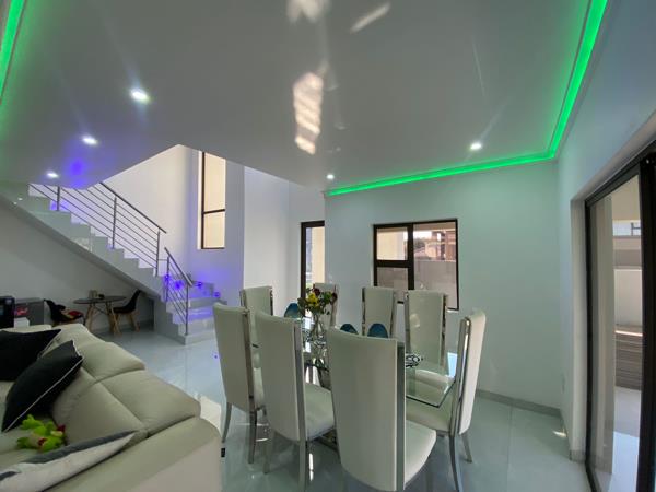 As you enter the house, you''re greeted by a warm and inviting atmosphere in the dining room and lounge, ideal for family gatherings and relaxation. The ground floor features a cozy bedroom with a conveniently located bathroom, along with a modern kitchen and scullery designed for efficiency and style. Upstairs, the spacious master bedroom boasts ample cupboard space and a luxurious full bathroom, providing a private retreat. Youll also find a second lounge and two additional bedrooms, each with its own en-suite bathroom. With thoughtful design and elegant finishes throughout, this home offers a lifestyle of unparalleled comfort and convenience. Don''t miss the chance to make it yours!