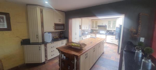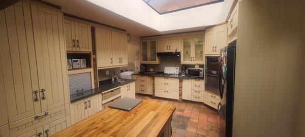 Fully equipped with solid wooden cabinetry, wooden en granite countertops and a large centre island for convenience plus a separate scullery.