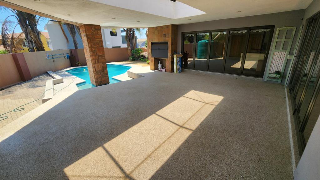 Open-plan living areas with abundance of natural light seamlessly flows to the stunning outside covered braai-area overlooking the sparkling pool.