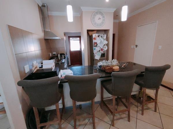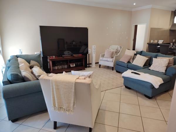 - A generous living space that effortlessly flows into an undercover patio, featuring a built-in braai and scenic views of a meticulously landscaped garden
