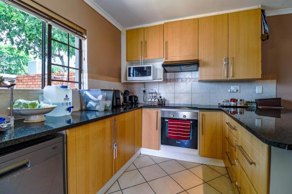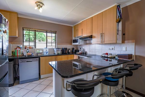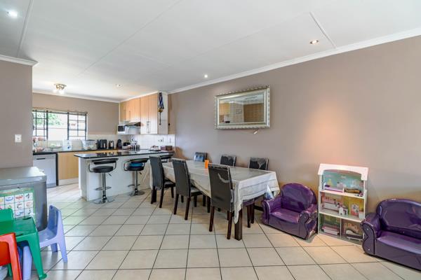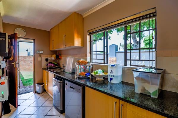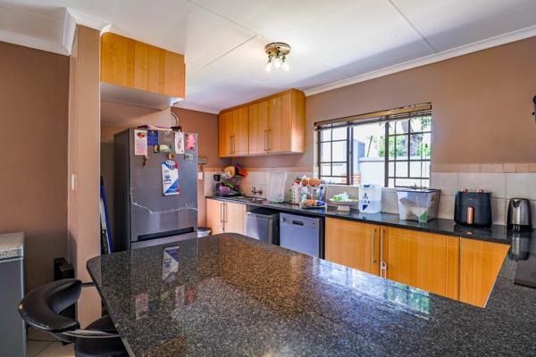 Discover this delightful corner townhouse, ideal for families, featuring a spacious garden where children can play and explore. This welcoming home includes three bathroomstwo of which are full bathsa generous living area, and a stylish open-plan kitchen equipped with granite countertops, ample cabinetry, and a separate scullery that accommodates two undercover appliances.
